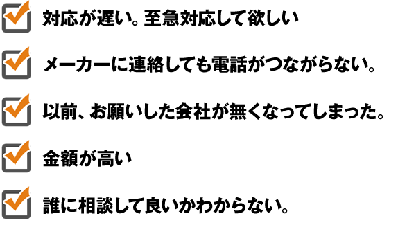 - 故障修理、交換が可能です。年間1200件以上の対応実績